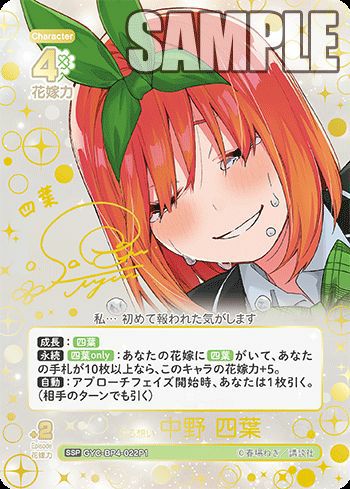 他の画像を見る 販売価格 ¥ 2,160 〜 ¥ 5,400 税込 販売価格 ¥ 税込 状態A 状態B 状態C 状態D 昂る想い 中野 四葉(GYC-BP4-022P1)[SSP] 商品詳細を見る お気に入りに登録する