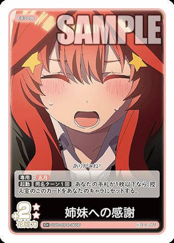 PRICE BASE通販の五等分の花嫁カード【エピソード】の関連商品を販売中!PRICE BASEなら、豊富な品揃えの商品を、お手頃価格でご提供していますので、ぜひこの機会にお買い求めください。