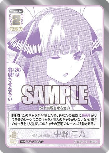 他の画像を見る 販売価格 ¥ 1,800 〜 ¥ 4,500 税込 販売価格 ¥ 税込 状態A 状態B 状態C 状態D 伝えたい気持ち 中野 二乃(GYC-PR-024P1)[PRSP] 商品詳細を見る お気に入りに登録する 在庫切れ