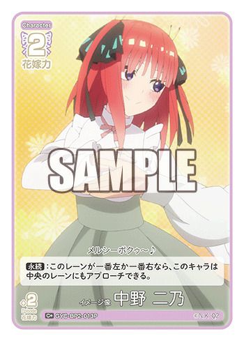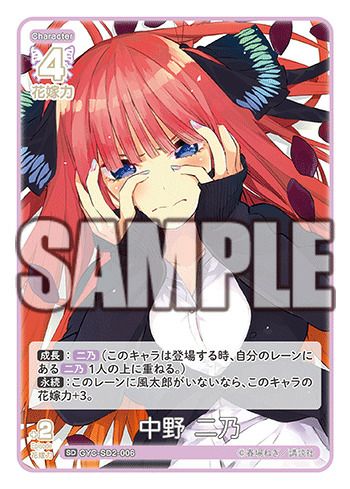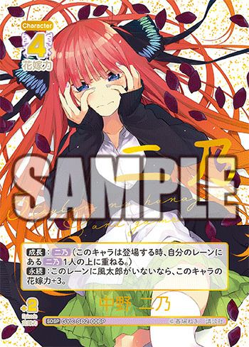 他の画像を見る 販売価格 ¥ 8,000 〜 ¥ 15,000 税込 販売価格 ¥ 税込 状態A 状態B 状態C 状態D 中野 二乃(GYC-SD2-006P)[SDSP] 商品詳細を見る お気に入りに登録する 在庫切れ