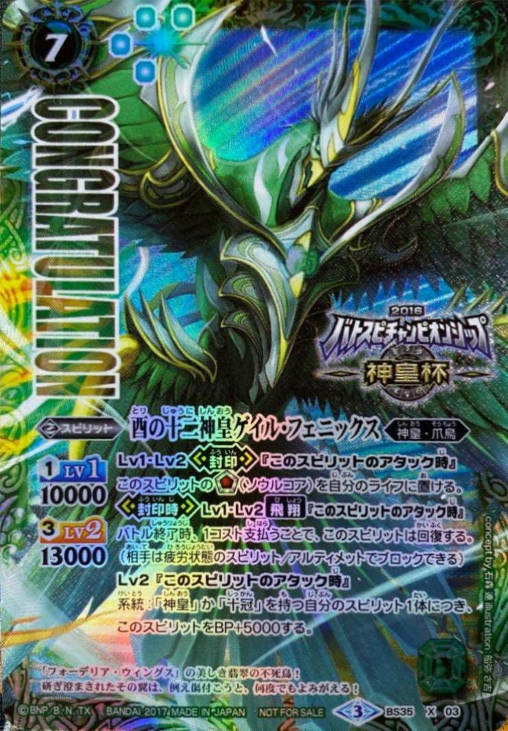 酉の十二神皇ゲイル・フェニックス (バトスピチャンピオンシップ2016神皇杯) (2017/3)(BS35-X03)[X]