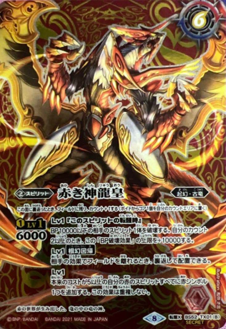 他の画像を見る 販売価格 ¥ 2,540 〜 ¥ 6,350 税込 販売価格 ¥ 税込 状態A 状態B 状態C 状態D 赤の世界/赤き神龍皇 (SECRET) (BSC38収録) (2021/8)(BS52-TX01)[転醒X] 商品詳細を見る お気に入りに登録する 在庫切れ
