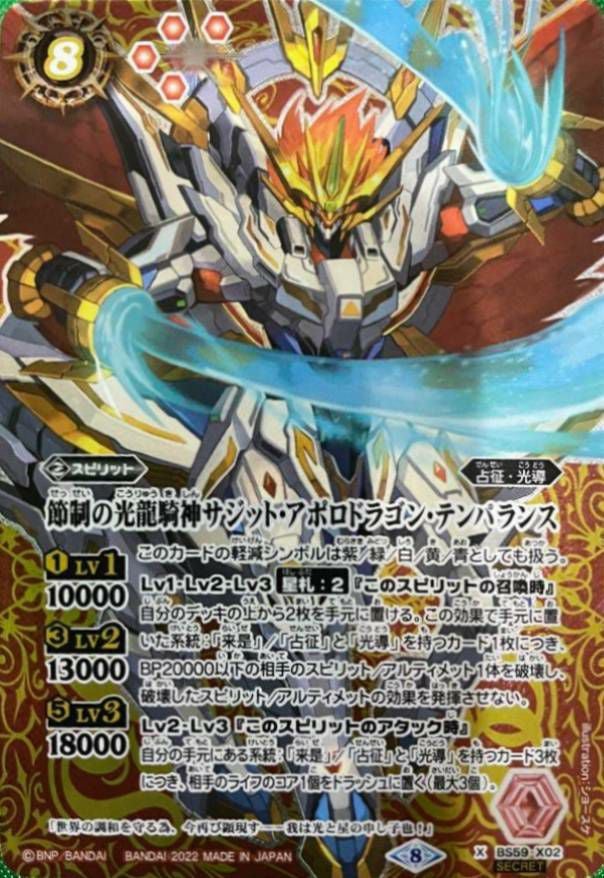 他の画像を見る 販売価格 ¥ 300 〜 ¥ 740 税込 販売価格 ¥ 税込 状態A 状態B 状態C 状態D 節制の光龍騎神サジット・アポロドラゴン・テンパランス (SECRET) (2022/8)(BS59-X02)[X] 商品詳細を見る お気に入りに登録する 在庫切れ