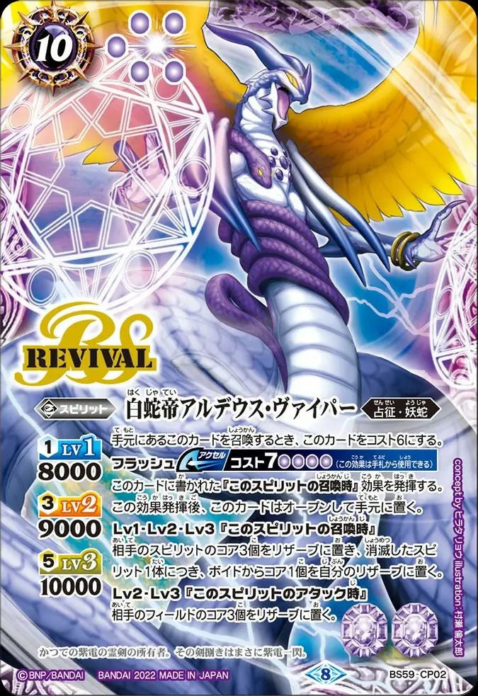 他の画像を見る 販売価格 ¥ 90 〜 ¥ 230 税込 販売価格 ¥ 税込 状態A 状態B 状態C 状態D 白蛇帝アルデウス・ヴァイパー (2022/8)(BS59-CP02)[CP] 商品詳細を見る お気に入りに登録する 在庫切れ