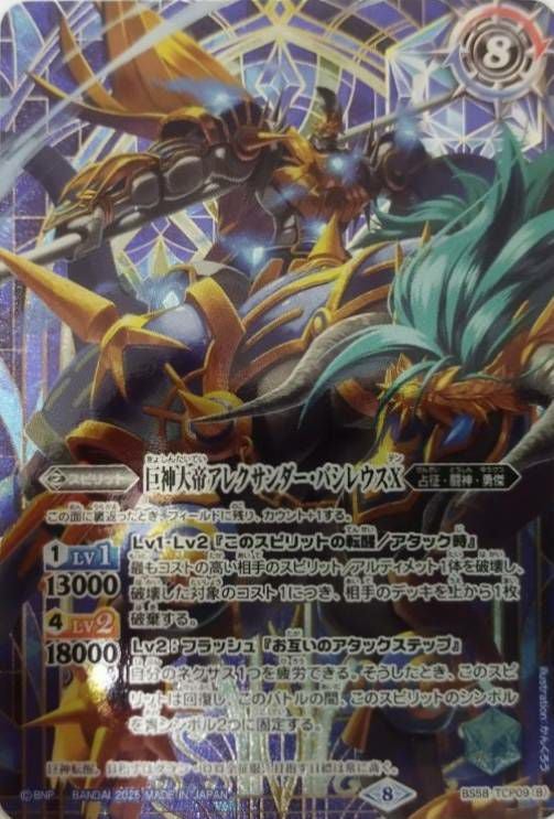 他の画像を見る 販売価格 ¥ 90 〜 ¥ 230 税込 販売価格 ¥ 税込 状態A 状態B 状態C 状態D 巨人大帝アレクサンダーX/巨神大帝アレクサンダー・バシレウスX (青背景/PB37収録) (2025/8)(BS58-TCP09)[CP] 商品詳細を見る お気に入りに登録する 在庫切れ