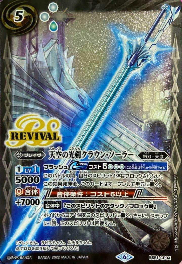 他の画像を見る 販売価格 ¥ 740 〜 ¥ 1,850 税込 販売価格 ¥ 税込 状態A 状態B 状態C 状態D 天空の光剣クラウン・ソーラー (Xレア仕様) (2022/6)(BS51-CP04)[CP] 商品詳細を見る お気に入りに登録する 在庫切れ