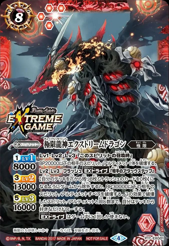 他の画像を見る 販売価格 ¥ 40 〜 ¥ 100 税込 販売価格 ¥ 税込 状態A 状態B 状態C 状態D 極限龍神エクストリームドラゴン (2017/4)(P17-EXG01)[P] 商品詳細を見る お気に入りに登録する 在庫切れ