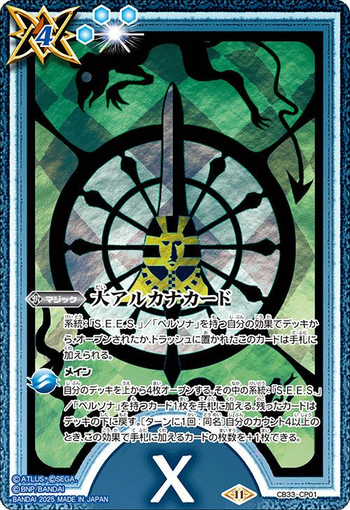 他の画像を見る 販売価格 ¥ 160 〜 ¥ 400 税込 販売価格 ¥ 税込 状態A 状態B 状態C 状態D 大アルカナカード(X) (2025/11)(CB33-CP01)[CP] 商品詳細を見る お気に入りに登録する 在庫切れ