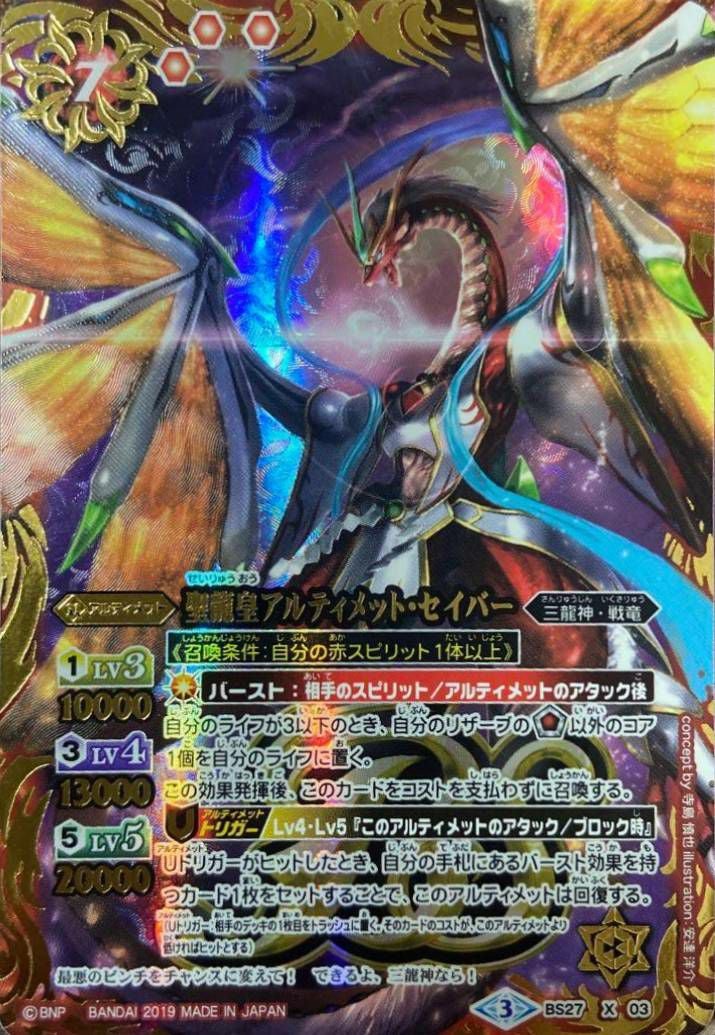 他の画像を見る 販売価格 ¥ 160 〜 ¥ 400 税込 販売価格 ¥ 税込 状態A 状態B 状態C 状態D 聖龍皇アルティメット・セイバー (テキスト欄BSロゴ/BS50収録) (2019/3)(BS27-X03)[X] 商品詳細を見る お気に入りに登録する 在庫切れ