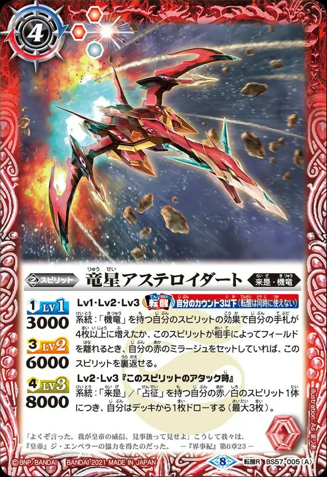 他の画像を見る 販売価格 ¥ 40 〜 ¥ 100 税込 販売価格 ¥ 税込 状態A 状態B 状態C 状態D 竜星アステロイダート/竜星アステロイダート -ドラグフォーム- (2021/8)(BS57-005)[転醒R] 商品詳細を見る お気に入りに登録する 在庫切れ