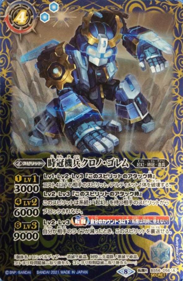 他の画像を見る 販売価格 ¥ 60 〜 ¥ 150 税込 販売価格 ¥ 税込 状態A 状態B 状態C 状態D 時冠機兵クロノ・ゴレム/時冠機帝カイザー・クロノ・ゴレム (SECRET) (2021/8)(BS56-056)[転醒R] 商品詳細を見る お気に入りに登録する 在庫切れ