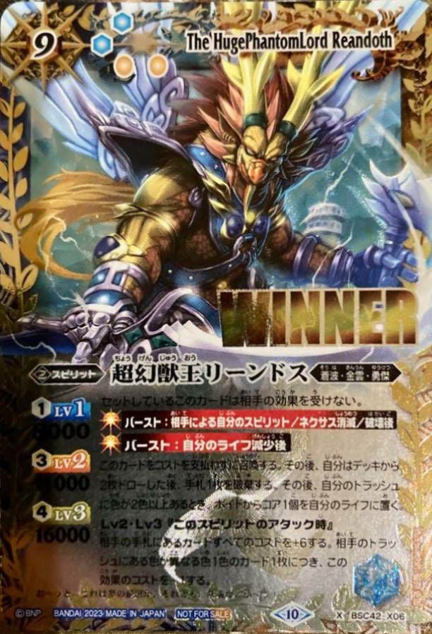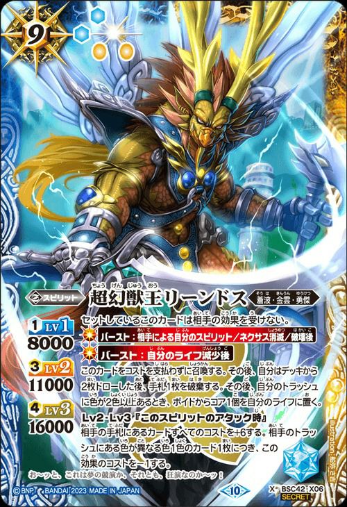 他の画像を見る 販売価格 ¥ 8,430 〜 ¥ 21,080 税込 販売価格 ¥ 税込 状態A 状態B 状態C 状態D 超幻獣王リーンドス (WINNER) (2023/10)(BSC42-X06)[X] 商品詳細を見る お気に入りに登録する 在庫切れ