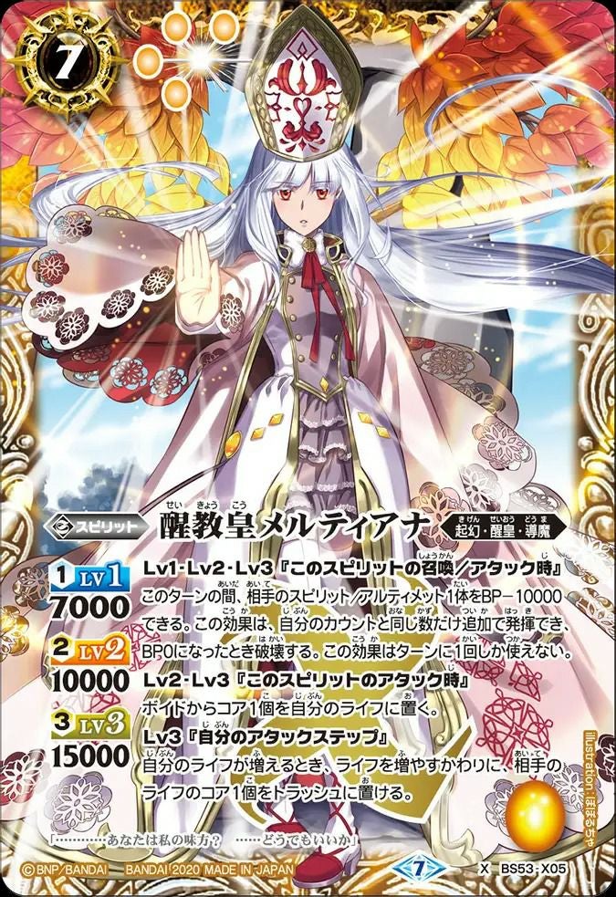 他の画像を見る 販売価格 ¥ 60 〜 ¥ 150 税込 販売価格 ¥ 税込 状態A 状態B 状態C 状態D 醒教皇メルティアナ (2020/7)(BS53-X05)[X] 商品詳細を見る お気に入りに登録する 在庫切れ