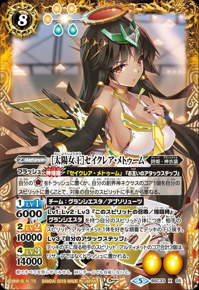 他の画像を見る 販売価格 ¥ 200 〜 ¥ 490 税込 販売価格 ¥ 税込 状態A 状態B 状態C 状態D [太陽女王]セイクレア・メトゥーム (2019/5)(BSC33-X05)[X] 商品詳細を見る お気に入りに登録する 在庫切れ