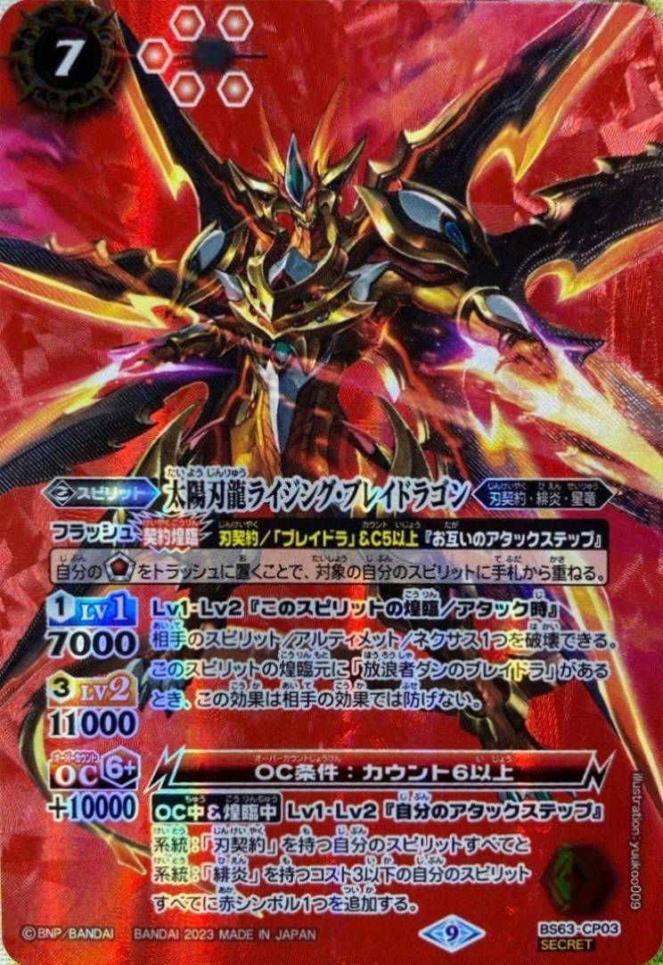 他の画像を見る 販売価格 ¥ 740 〜 ¥ 1,850 税込 販売価格 ¥ 税込 状態A 状態B 状態C 状態D 太陽刃龍ライジング・ブレイドラゴン (SECRET) (2023/9)(BS63-CP03)[CP] 商品詳細を見る お気に入りに登録する 在庫切れ
