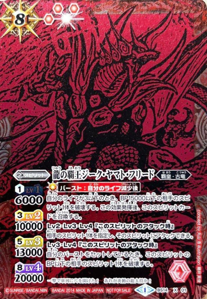 他の画像を見る 販売価格 ¥ 90 〜 ¥ 230 税込 販売価格 ¥ 税込 状態A 状態B 状態C 状態D 龍の覇王ジーク・ヤマト・フリード (イラスト赤色) (2014/1)(BS14-X01)[X] 商品詳細を見る お気に入りに登録する 在庫切れ