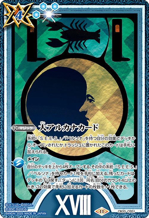 他の画像を見る 販売価格 ¥ 230 〜 ¥ 570 税込 販売価格 ¥ 税込 状態A 状態B 状態C 状態D 大アルカナカード(XVIII) (2025/11)(CB33-CP01)[CP] 商品詳細を見る お気に入りに登録する 在庫切れ