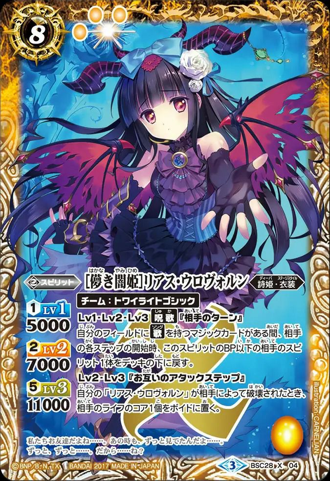 他の画像を見る 販売価格 ¥ 60 〜 ¥ 150 税込 販売価格 ¥ 税込 状態A 状態B 状態C 状態D [儚き闇姫]リアス・ウロヴォルン (2017/3)(BSC28-X04)[X] 商品詳細を見る お気に入りに登録する 在庫切れ