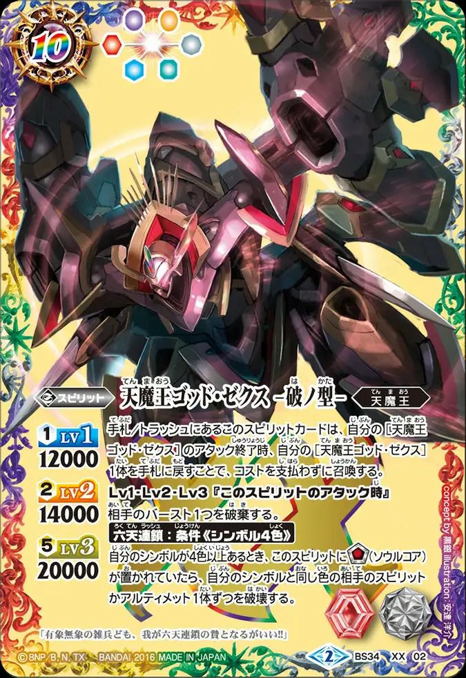 他の画像を見る 販売価格 ¥ 300 〜 ¥ 740 税込 販売価格 ¥ 税込 状態A 状態B 状態C 状態D 天魔王ゴッド・ゼクス -破ノ型- (2016/2)(BS34-XX02)[XX] 商品詳細を見る お気に入りに登録する 在庫切れ