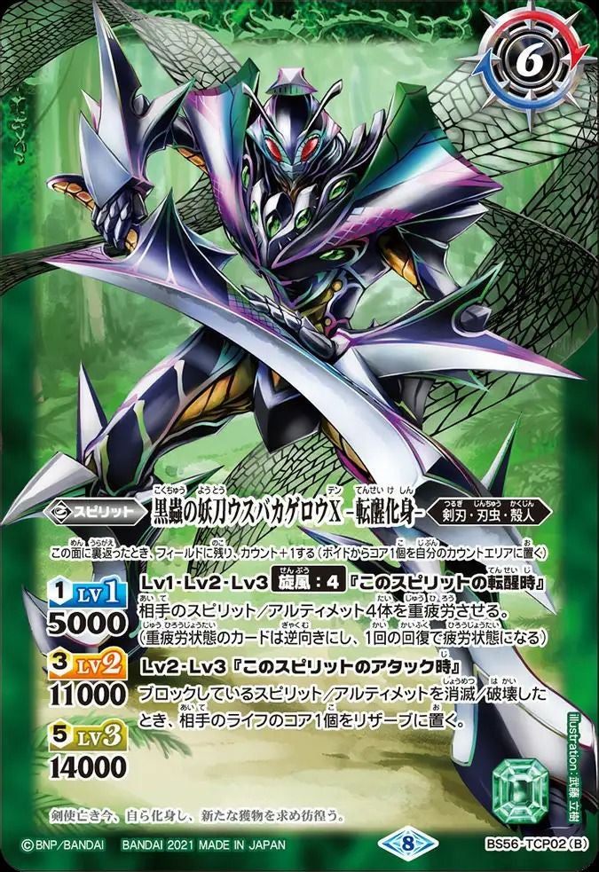 他の画像を見る 販売価格 ¥ 40 〜 ¥ 100 税込 販売価格 ¥ 税込 状態A 状態B 状態C 状態D 黒蟲の妖刀ウスバカゲロウX/黒蟲の妖刀ウスバカゲロウX -転醒化身- (2021/8)(BS56-TCP02)[CP] 商品詳細を見る お気に入りに登録する 在庫切れ