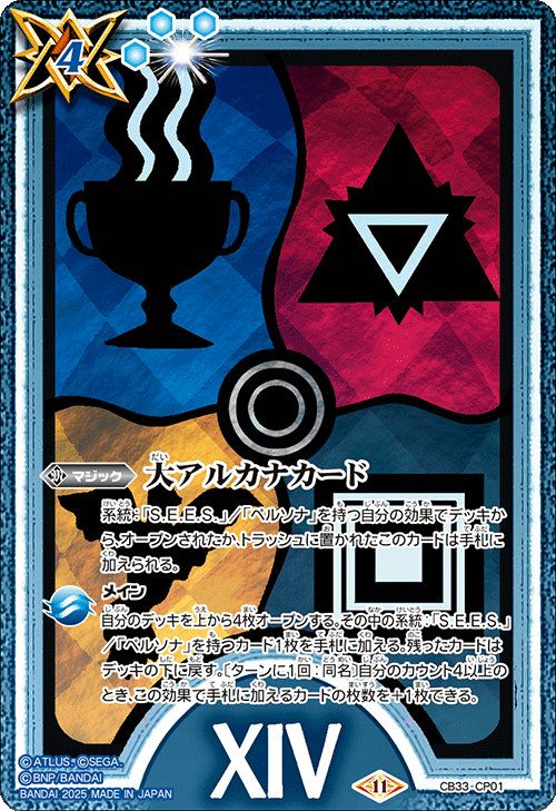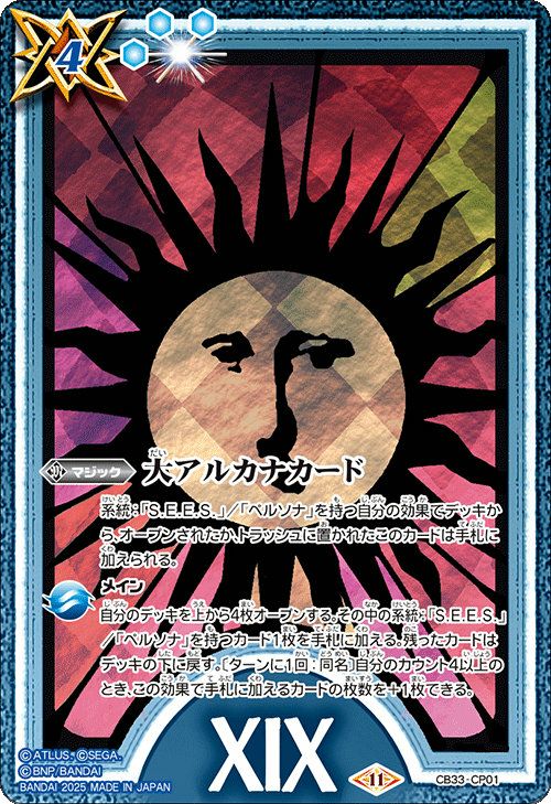他の画像を見る 販売価格 ¥ 160 〜 ¥ 400 税込 販売価格 ¥ 税込 状態A 状態B 状態C 状態D 大アルカナカード(XIX) (2025/11)(CB33-CP01)[CP] 商品詳細を見る お気に入りに登録する 在庫切れ