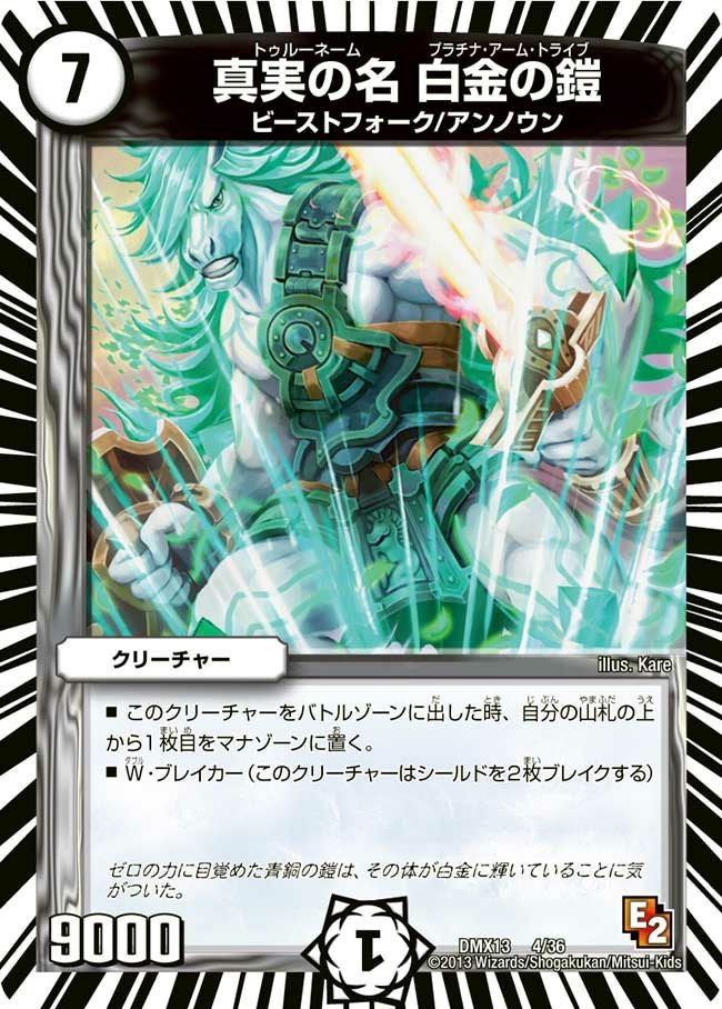 真実の名 白金の鎧(DMX13 4/36)[-] 商品の状態の定義については、商品の状態についてをご覧ください。 また、商品を購入する際の注意点については、利用規約をご覧ください。 掲載している画像は状態Aのものです。 状態表記がない商品は、プレイ用としてご提供しております。また、同名・同イラスト・同レアリティであっても、型番が異なるカードをお届けする場合がございます。 中古商品の性質上、返品および交換はお受けできませんので、ご了承ください。