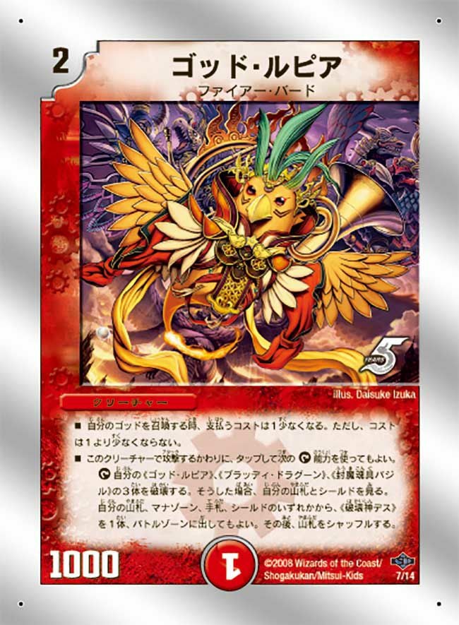 ゴッド・ルピア(DMC40 7/14)[-] 商品の状態の定義については、商品の状態についてをご覧ください。 また、商品を購入する際の注意点については、利用規約をご覧ください。 掲載している画像は状態Aのものです。 状態表記がない商品は、プレイ用としてご提供しております。また、同名・同イラスト・同レアリティであっても、型番が異なるカードをお届けする場合がございます。 中古商品の性質上、返品および交換はお受けできませんので、ご了承ください。