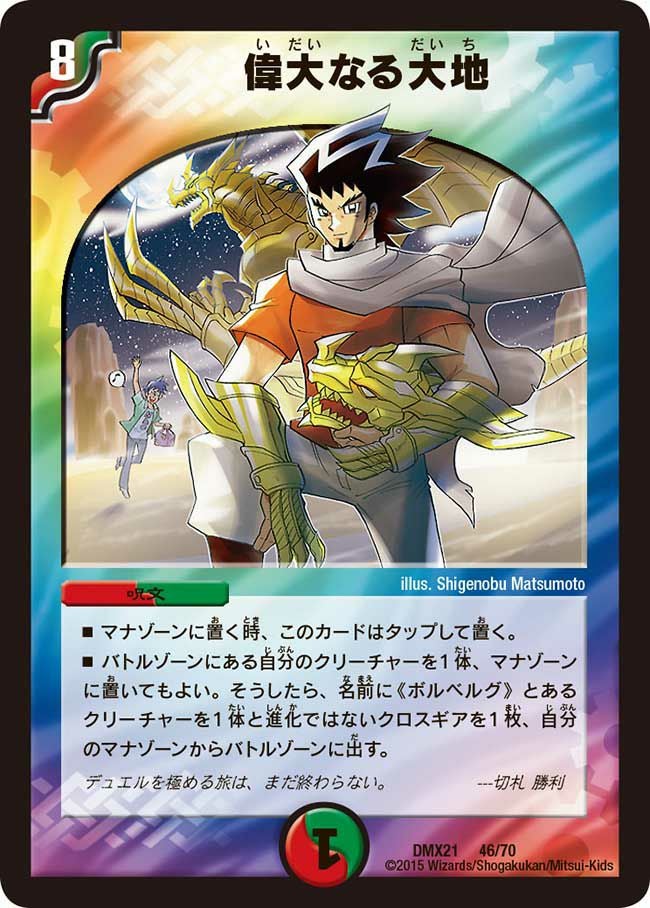偉大なる大地(DMX21 46/70)[-] 商品の状態の定義については、商品の状態についてをご覧ください。 また、商品を購入する際の注意点については、利用規約をご覧ください。 掲載している画像は状態Aのものです。 状態表記がない商品は、プレイ用としてご提供しております。また、同名・同イラスト・同レアリティであっても、型番が異なるカードをお届けする場合がございます。 中古商品の性質上、返品および交換はお受けできませんので、ご了承ください。