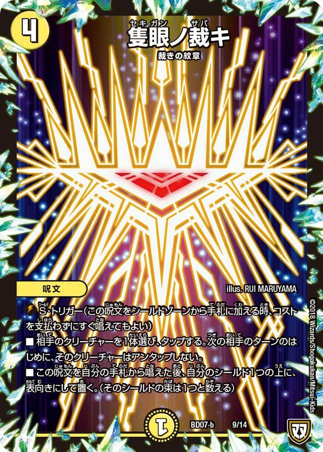 隻眼ノ裁キ(DMBD07-b 9/14)[-] 商品の状態の定義については、商品の状態についてをご覧ください。 また、商品を購入する際の注意点については、利用規約をご覧ください。 掲載している画像は状態Aのものです。 状態表記がない商品は、プレイ用としてご提供しております。また、同名・同イラスト・同レアリティであっても、型番が異なるカードをお届けする場合がございます。 中古商品の性質上、返品および交換はお受けできませんので、ご了承ください。