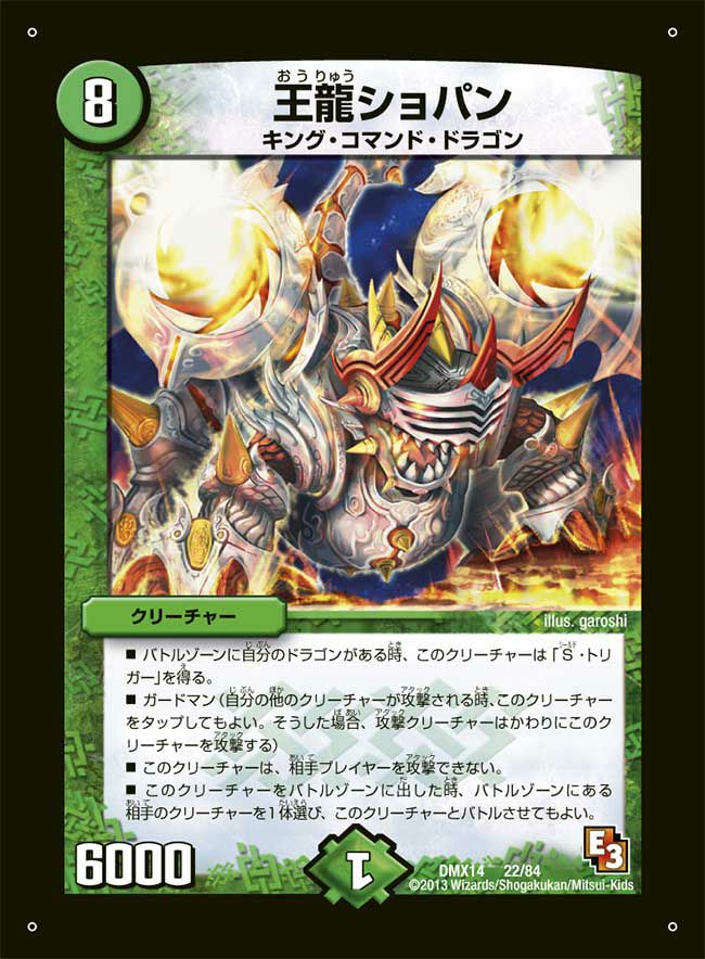 王龍ショパン(DMX14 22/84)[-] 商品の状態の定義については、商品の状態についてをご覧ください。 また、商品を購入する際の注意点については、利用規約をご覧ください。 掲載している画像は状態Aのものです。 状態表記がない商品は、プレイ用としてご提供しております。また、同名・同イラスト・同レアリティであっても、型番が異なるカードをお届けする場合がございます。 中古商品の性質上、返品および交換はお受けできませんので、ご了承ください。