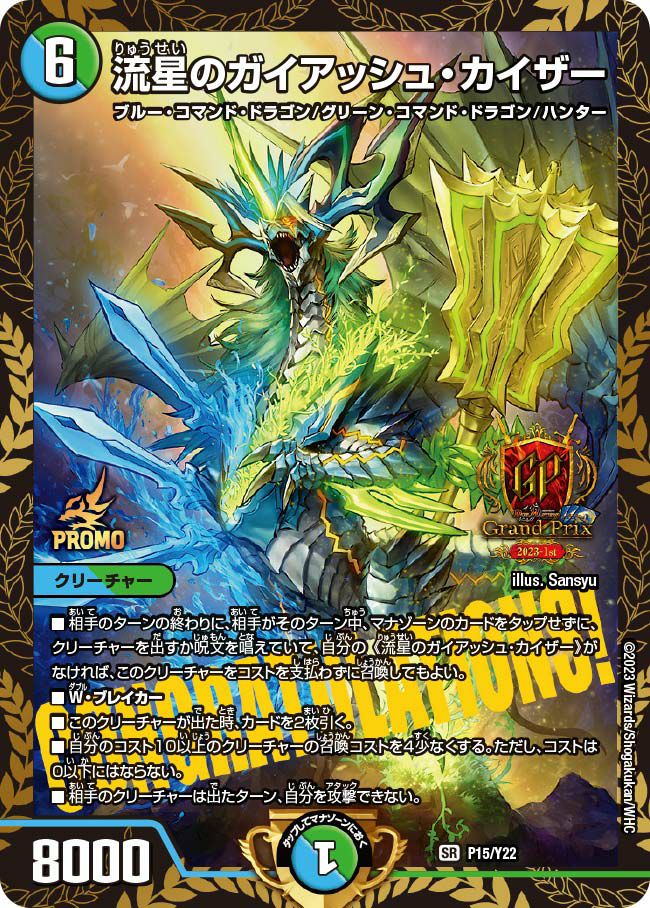 他の画像を見る 販売価格 ¥ 400,000 〜 ¥ 999,990 税込 販売価格 ¥ 税込 状態A 状態B 状態C 状態D 流星のガイアッシュ・カイザー(DMPROMOY22 P15/Y22)[SR] 商品詳細を見る お気に入りに登録する 在庫切れ