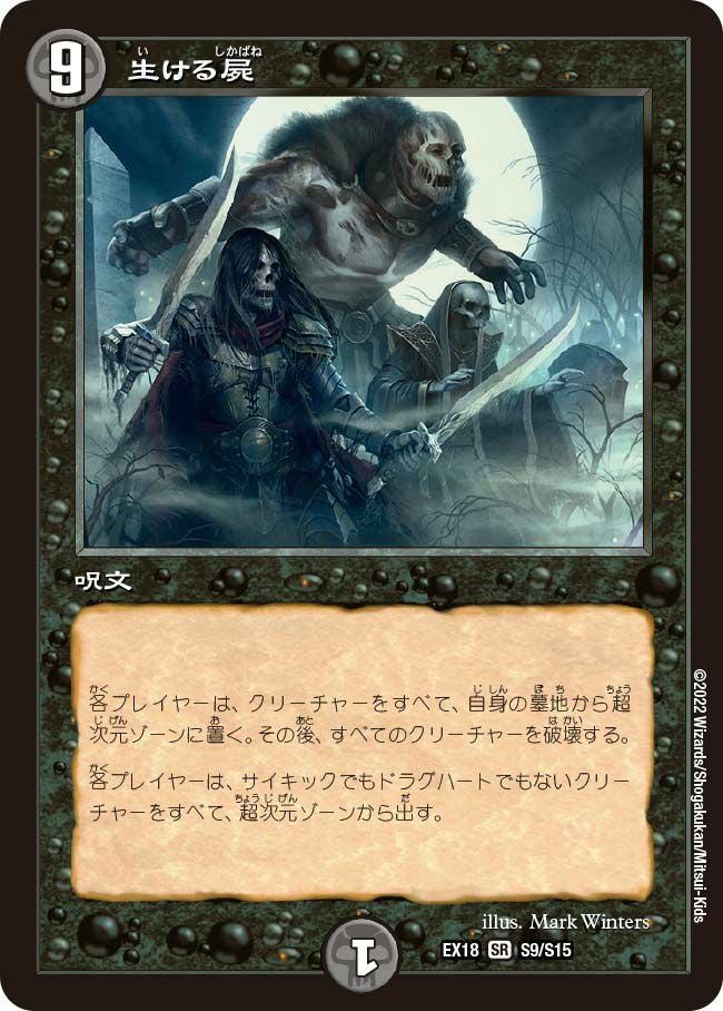 生ける屍(DMEX18 S9/S15)[SR] 商品の状態の定義については、商品の状態についてをご覧ください。 また、商品を購入する際の注意点については、利用規約をご覧ください。 掲載している画像は状態Aのものです。 状態表記がない商品は、プレイ用としてご提供しております。また、同名・同イラスト・同レアリティであっても、型番が異なるカードをお届けする場合がございます。 中古商品の性質上、返品および交換はお受けできませんので、ご了承ください。
