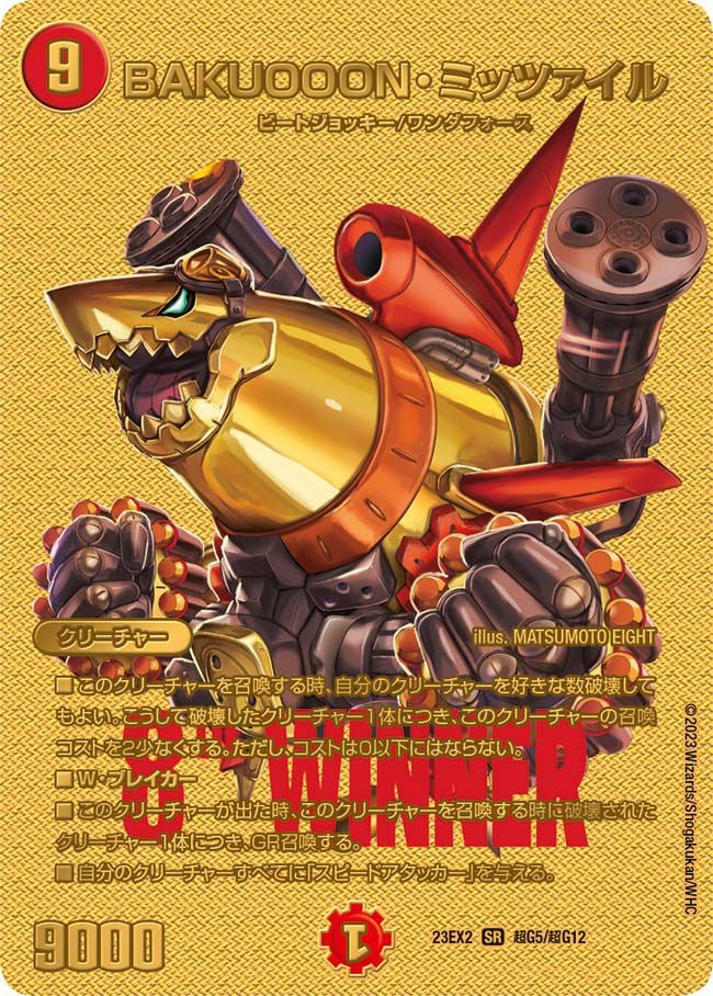 他の画像を見る 販売価格 ¥ 220 〜 ¥ 570 税込 販売価格 ¥ 税込 状態A 状態B 状態C 状態D BAKUOOON・ミッツァイル(DM23EX2 超G5/超G12)[SR] 商品詳細を見る お気に入りに登録する 在庫切れ