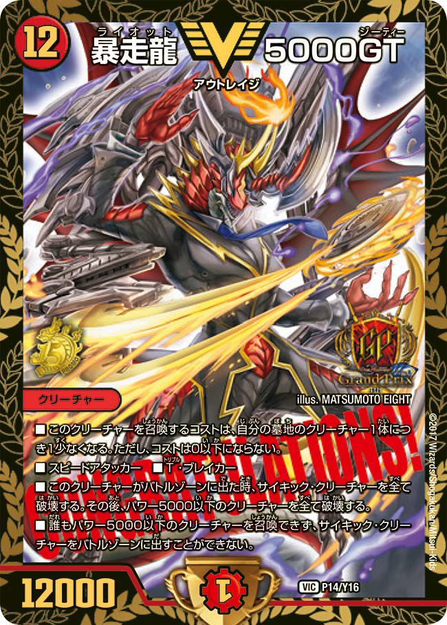 他の画像を見る 販売価格 ¥ 340 〜 ¥ 860 税込 販売価格 ¥ 税込 状態A 状態B 状態C 状態D 暴走龍 5000GT(DMRP06 G1/G5)[VIC] 商品詳細を見る お気に入りに登録する 在庫切れ