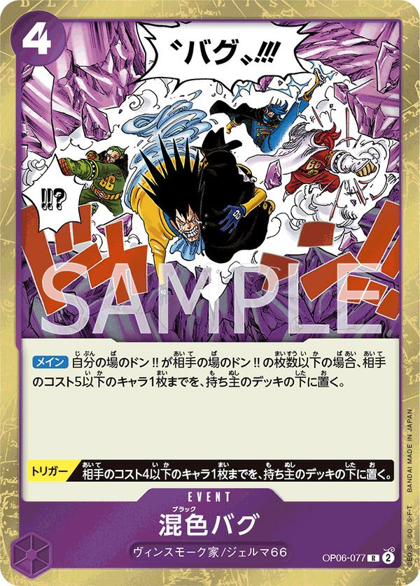 他の画像を見る 販売価格 ¥ 15 〜 ¥ 40 税込 販売価格 ¥ 税込 状態A 状態B 状態C 状態D ヴィンスモーク・ニジ(海賊旗フォイル)(OP06-065)[R] 商品詳細を見る お気に入りに登録する