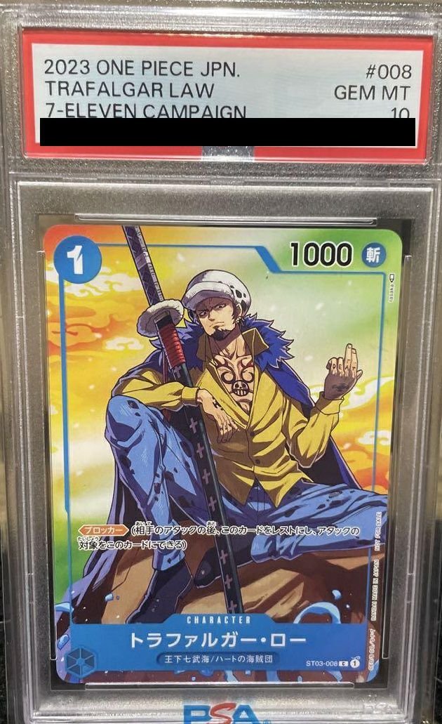 他の画像を見る 販売価格 ¥ 2,980 税込 【PSA10】トラファルガー・ロー(セブンイレブンタイアップキャンペーン オリジナルカード)(ST03-008)[C-P] 再入荷お知らせ お気に入りに登録する 在庫切れ