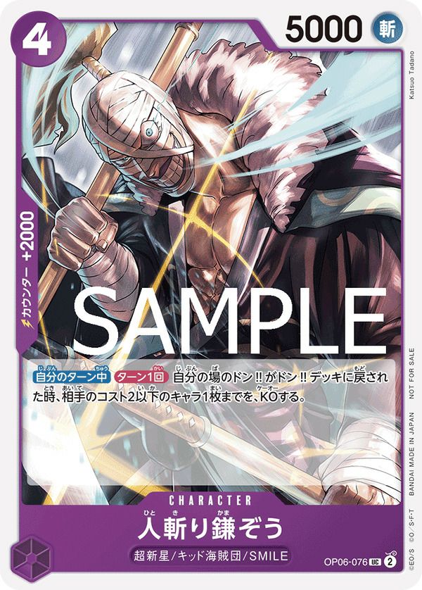 他の画像を見る 販売価格 ¥ 75 〜 ¥ 150 税込 販売価格 ¥ 税込 状態A 状態B 状態C 状態D 人斬り鎌ぞう(スタンダードバトルパックVol.9)(OP06-076)[UC] 商品詳細を見る お気に入りに登録する 在庫切れ