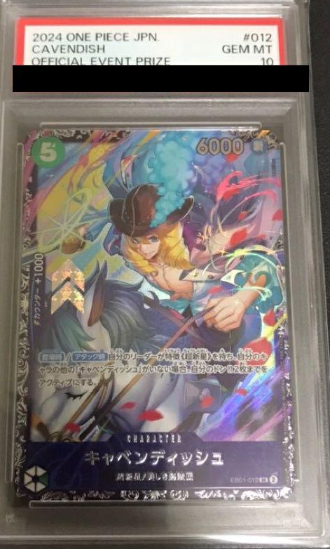 キャベンディッシュ(フラッグシップバトル2024 4月ベスト8記念品)(EB01-012)[SR-P]は、ワンピースカードゲームのプレミアムプロモカードで、特別な記念イベントで配布されたカードです。キャベンディッシュはその華麗な技と無敵の戦闘力で知られ、カードもその個性を反映した迫力のあるデザインが特徴です。これにより、デッキにおける攻撃力や支援効果が際立ち、特に戦略的に重要な役割を果たします。シングルカードとしては希少性が高く、コレクション目的やバトルでの活用が期待されます。