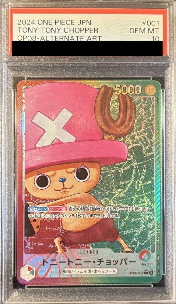 「トニートニー・チョッパー(OP08-001)[L-P]」は、ワンピースカードゲームのブースターパック「二つの伝説」に収録された、パラレルレア(L-P)のカードです。チョッパーが特徴的に描かれた美しいイラストが魅力で、パラレルバージョンは通常版よりもさらに凝ったデザインが施されています。デッキにおいては、ユニークな能力や色合いを持つカードとして、他のカードと組み合わせて戦略的に使えます。