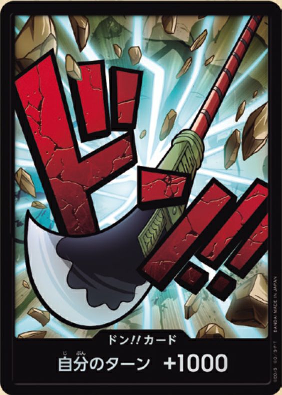 「ドン!!カード:エドワード・ニューゲート」は、強大な力を誇る「白ひげ海賊団」の船長、エドワード・ニューゲートを描いたスーパーパラレルカードです。カードは、攻撃的な役割を果たし、白ひげの圧倒的な戦闘能力を反映した能力が特徴。デッキでは、攻撃の要として活躍するでしょう。イラストは、彼の威圧感を際立たせる迫力満点なデザインとなっています。
