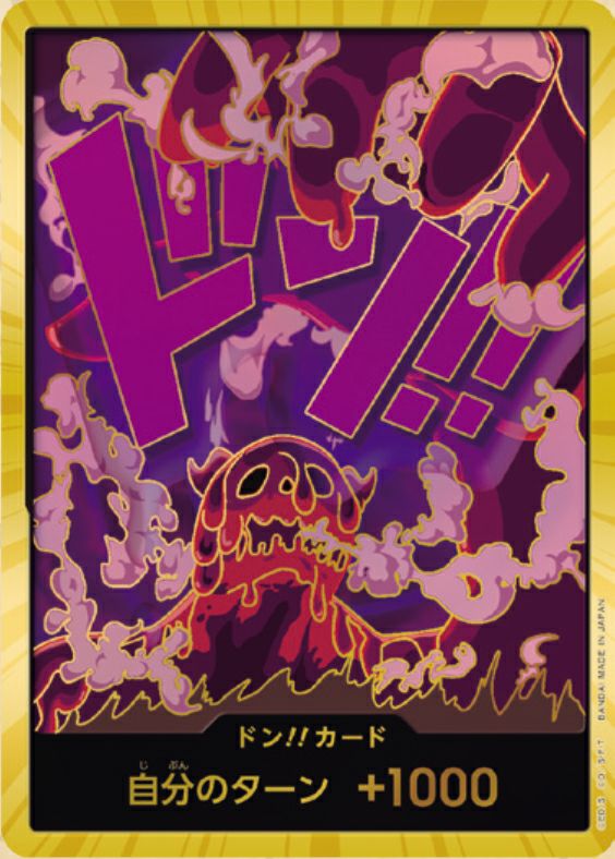 「ドン!!カード : マゼラン スーパーパラレル」は、「ワンピースカードゲーム」に登場するキャラクターカードで、マゼランを描いた豪華なスーパーパラレル仕様です。マゼランはインペルダウンの元監獄長で、猛毒を操る能力「毒毒の実」の使い手。カードでは、彼の毒攻撃を反映した強力な能力が特徴で、デッキ内で敵のバリアを突破したり、高い破壊力を持つターン終了時の能力で活躍します。シンプルでありながらも印象的なアートワークが施され、収集価値が高い一枚です。