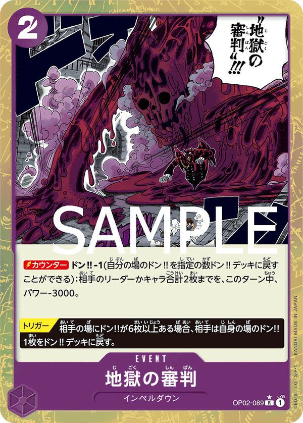 他の画像を見る 販売価格 ¥ 75 〜 ¥ 120 税込 販売価格 ¥ 税込 状態A 状態B 状態C 状態D 地獄の審判(OP02-089)[R-P](フルアートパラレル) 商品詳細を見る お気に入りに登録する