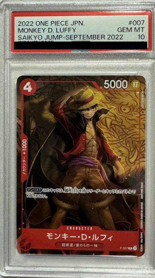 他の画像を見る 販売価格 ¥ 17,000 税込 【PSA10】モンキー・D・ルフィ(P-033)[プロモ]【週刊少年ジャンプ2023年6・7合併号付録】 再入荷お知らせ お気に入りに登録する 在庫切れ