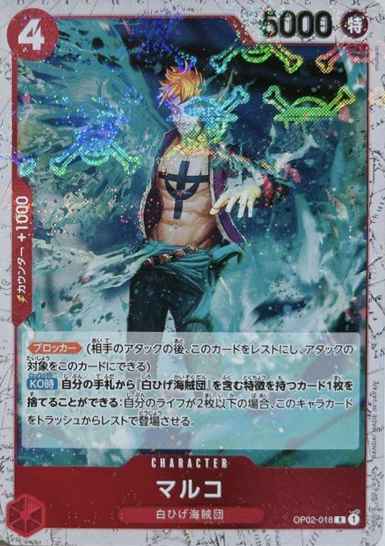 他の画像を見る 販売価格 ¥ 125 〜 ¥ 250 税込 販売価格 ¥ 税込 状態A 状態B 状態C 状態D マルコ(OP02-018)[R-P](フルアートパラレル) 商品詳細を見る お気に入りに登録する