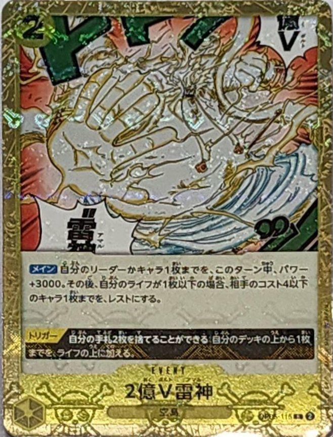 他の画像を見る 販売価格 ¥ 50 〜 ¥ 100 税込 販売価格 ¥ 税込 状態A 状態B 状態C 状態D 2億V雷神(OP05-115)[R-P](フルアートパラレル) 商品詳細を見る お気に入りに登録する