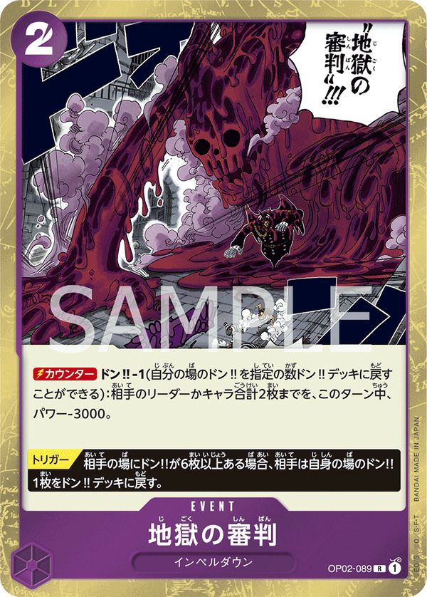 他の画像を見る 販売価格 ¥ 75 〜 ¥ 120 税込 販売価格 ¥ 税込 状態A 状態B 状態C 状態D 地獄の審判(OP02-089)[R-P](フルアートパラレル) 商品詳細を見る お気に入りに登録する