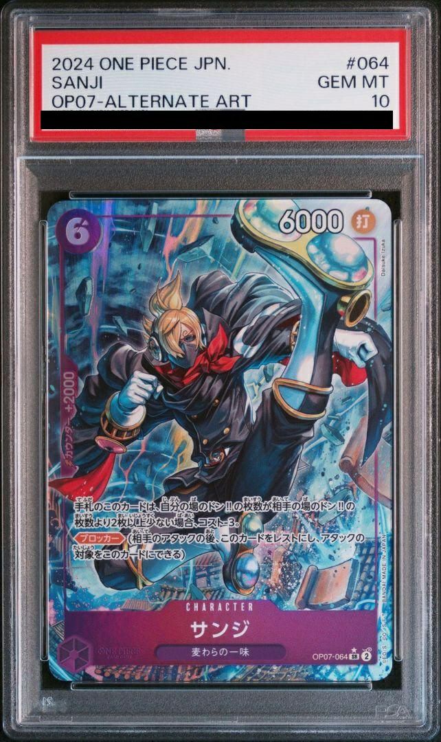 サンジ(OP07-064)[SR-P]は、アニメ「ワンピース」の登場キャラクター・サンジのカードで、パラレル(フルアート)仕様のSRカードです。カードのデザインは、サンジが印象的なポーズをとるシーンが描かれ、豪華なフルアートの演出が特徴です。効果としては、特定の条件で相手を圧倒する強力な攻撃力を発揮でき、赤色のデッキで重要な役割を果たします。