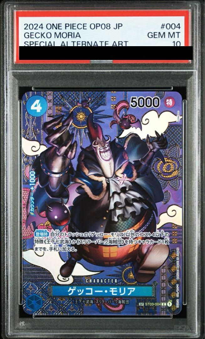 ゲッコー・モリア(ST03-004)[C-SPC]は、青色の4コストキャラカードで、5000のパワーを持ち、登場時に「ゲッコー・モリア」以外のコスト4以下の「王下七武海」か「スリラーバーク海賊団」を持つキャラカード1枚を手札に加える能力を持っています。ゲーム内では、特に「王下七武海」や「スリラーバーク海賊団」デッキでのサポート役として活躍し、手札の補充を助ける重要なカードです。また、パラレル版(C-SPC)は美麗なイラストが特徴で、コレクション性も高いカードとなっています。