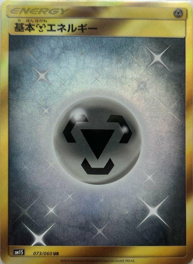 基本鋼エネルギー(073/060)[UR]は、拡張パック「コレクション サン」に収録されたウルトラレア仕様の基本エネルギーカードです。鋼タイプのポケモンにエネルギーを供給する際に使用されます。UR(ウルトラレア)仕様のカードは、豪華なホイル加工が施され、特にコレクターから高い人気を集めています。デッキ構築においては、鋼タイプのポケモンを中心としたデッキで使用されることが多いです。