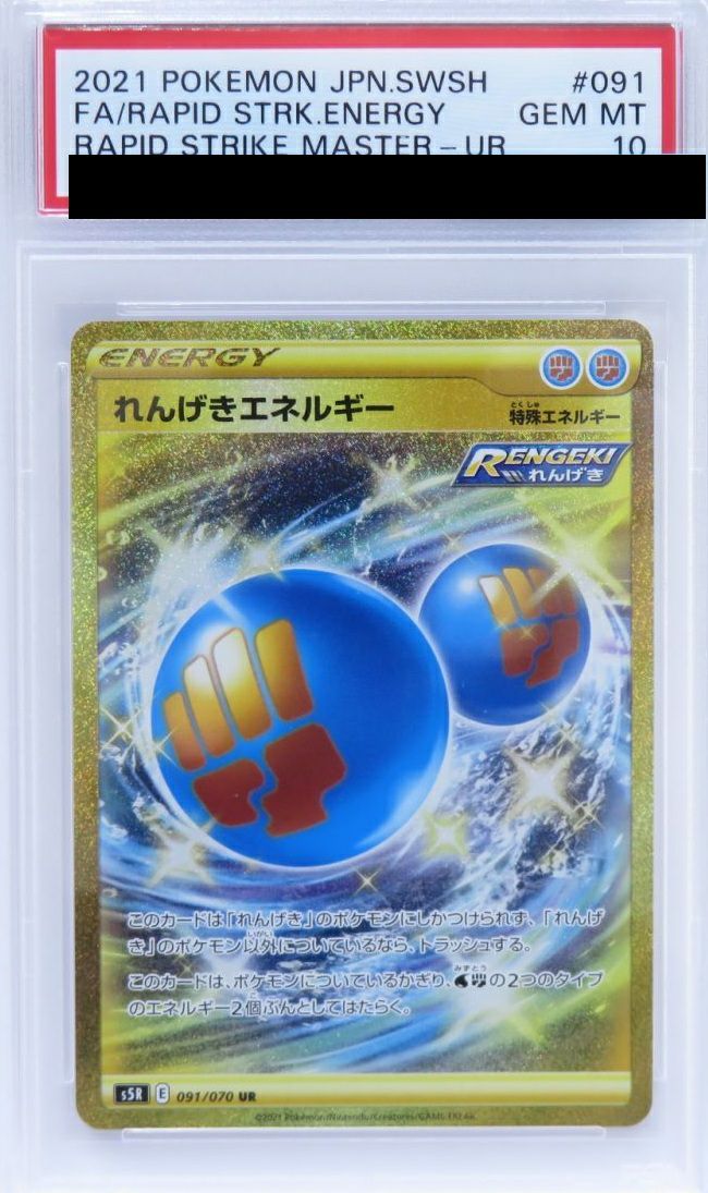 れんげきエネルギー(091/070)は、れんげきポケモン専用の特殊エネルギーカードです。このカードを付けると、水と闘の2種類のエネルギー2個分として機能します。ただし、れんげき以外のポケモンに付けるとトラッシュされるため、デッキ構築時には注意が必要です。UR(ウルトラレア)版は、豪華なホログラフィック加工が施され、コレクション価値も高い一枚です。